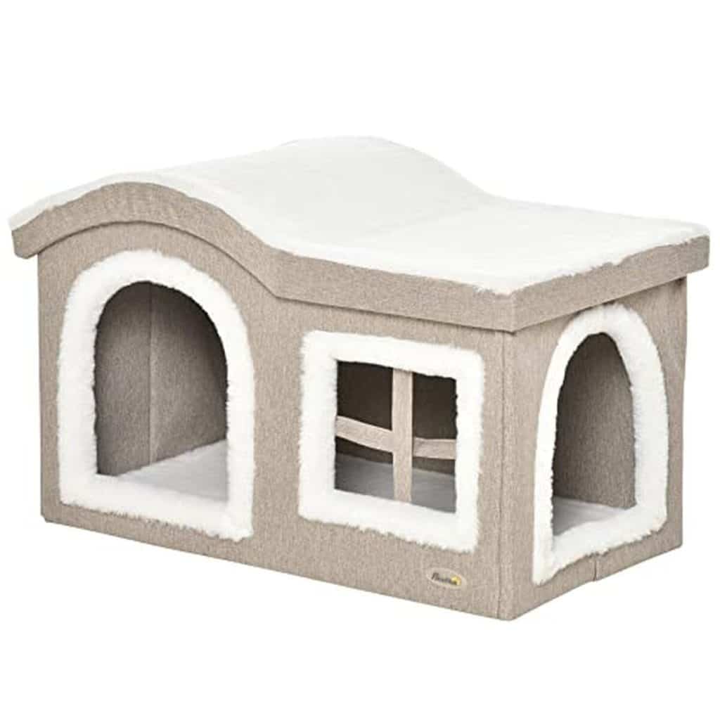 L’esthétique beige et blanc de la maison la rend facilement intégrable dans n’importe quelle pièce. Bien que la structure soit stable, certains utilisateurs regrettent un manque de confort intérieur initial. Ajouter un matelas moelleux pourrait s’avérer nécessaire pour rendre l’espace plus douillet et apaiser les chats les plus exigeants en matière de confort.
